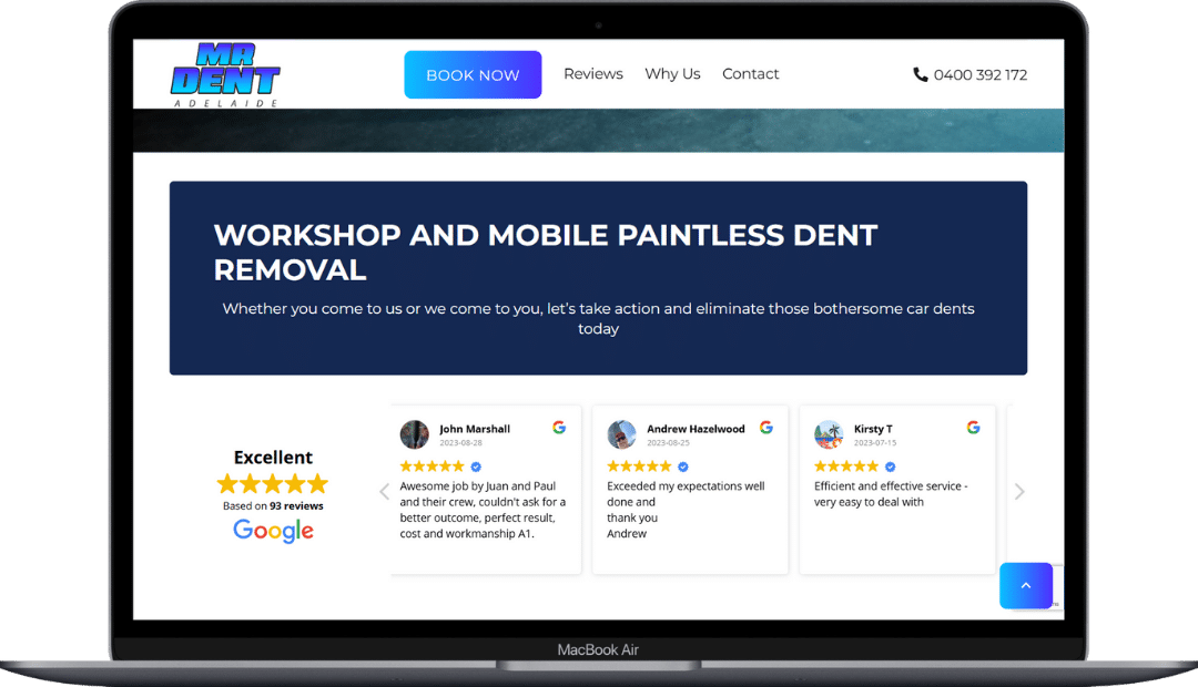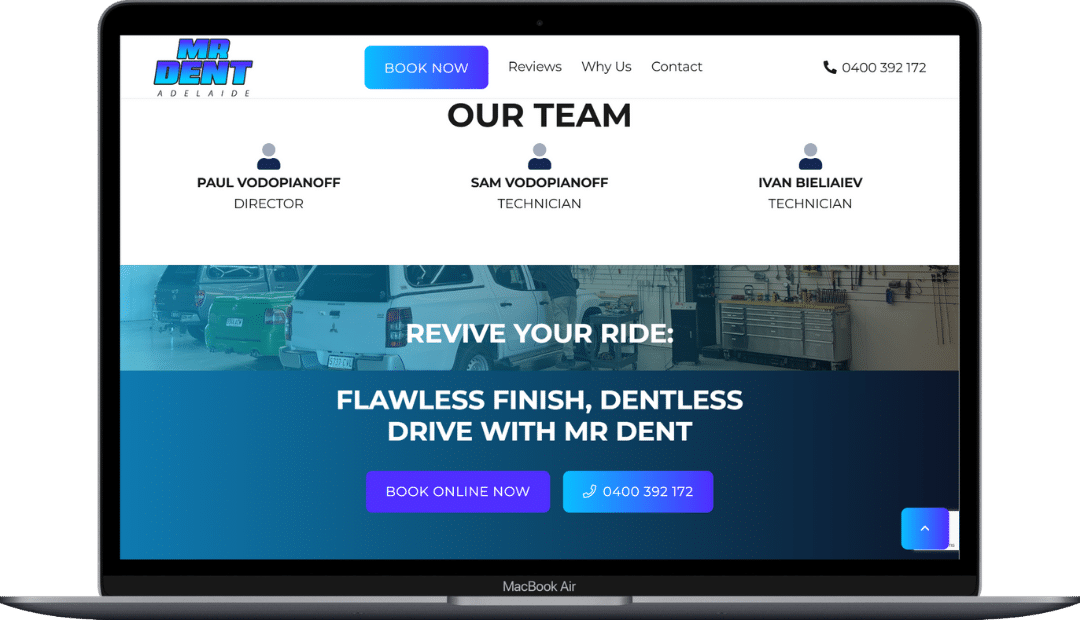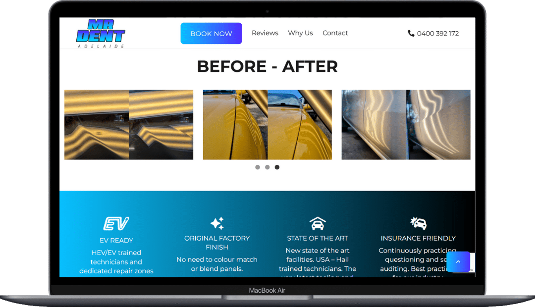 Mr Dent Adelaide partnered with Warren Digital to create a streamlined, professional website that reflects the precision and care behind their paintless dent repair services.