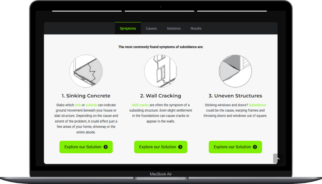 We organised the site with simple menus and clear categories so visitors can move easily through services like Slab Jacking, Underpinning and Crack Injection and Repair. This structure helps users find the right information quickly and without confusion.