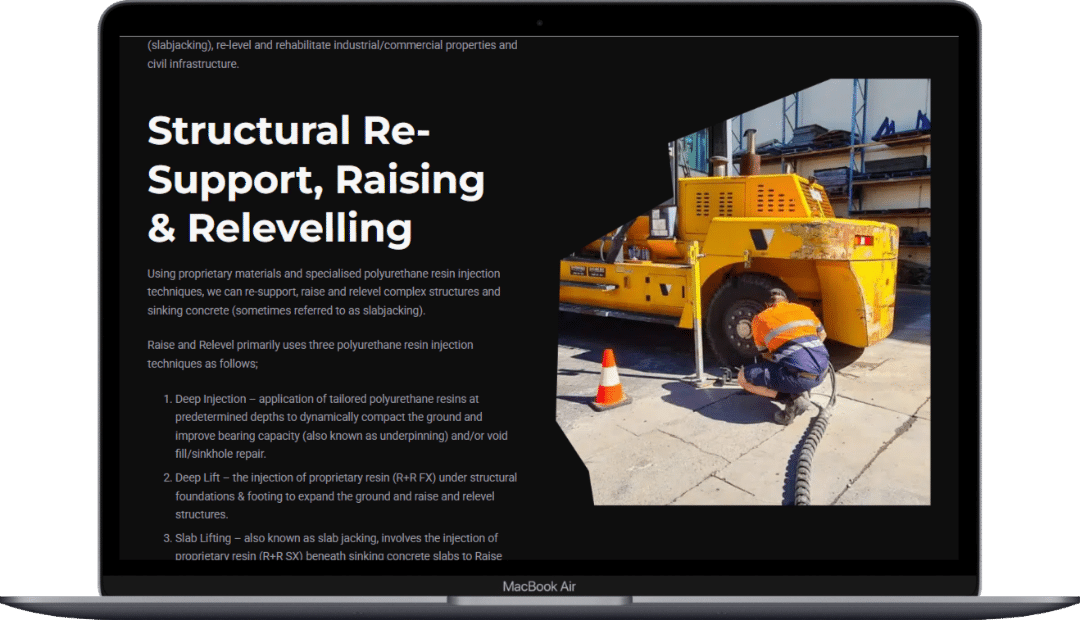We added a simple enquiry form and a blog for updates and insights on subsidence solutions. These features support engagement, build trust and position Raise + Relevel as experts in their field.